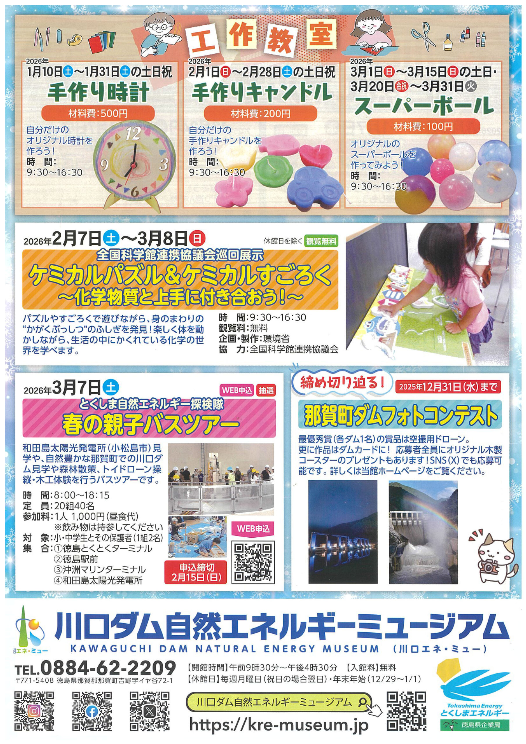 申込電話番号:0884-62-2209(川口ダム自然エネルギーミュージアム)